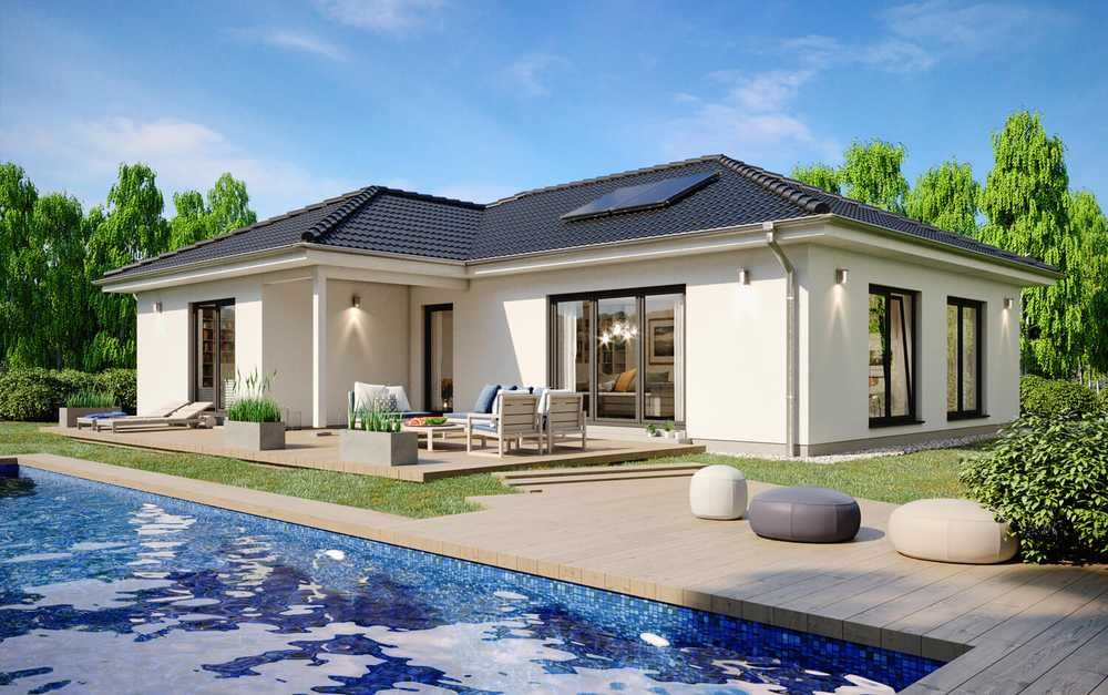 Dieser Bungalow besticht durch klassisches Design und großzügige Räume. Es ist auf einer Ebenen geplant. Eines der Highlights dürfte der großzügige Wohn- Essbereich. Dies bietet einen geeigneten Ort für die ganze Familie.