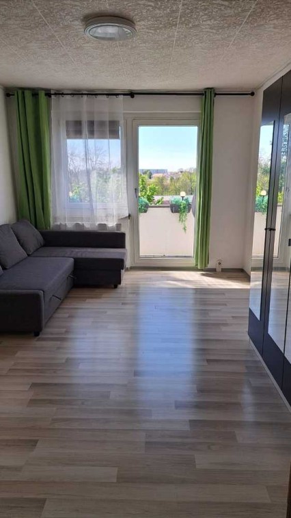Von der Diele aus gelangen Sie in ein Tageslichtbad mit Wanne, in eine Tageslichtküche mit Waschmaschinenanschluss, ins geräumige Wohnzimmer mit Zugang zum Balkon und angrenzendem Schlafzimmer mit ausreichend Platz für alles Nötige.