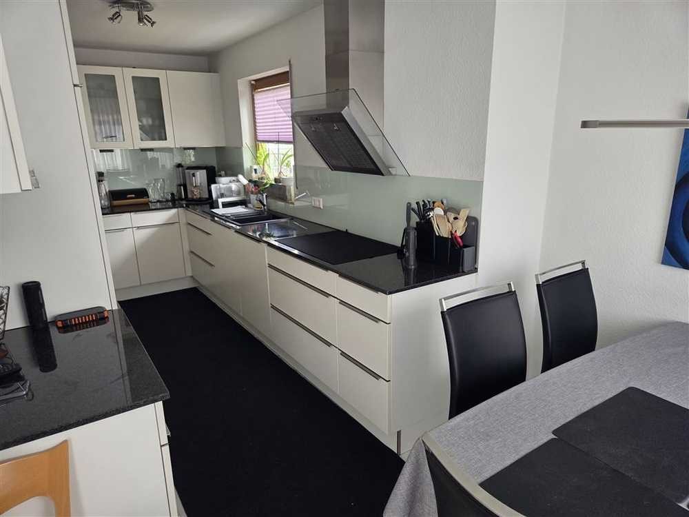 Die gut ausgestattete, offene Küche grenzt an den Essbereic. Von hier gelangt man direkt in das großzügige Wohnzimmer, dass zum Entspannen einlädt.