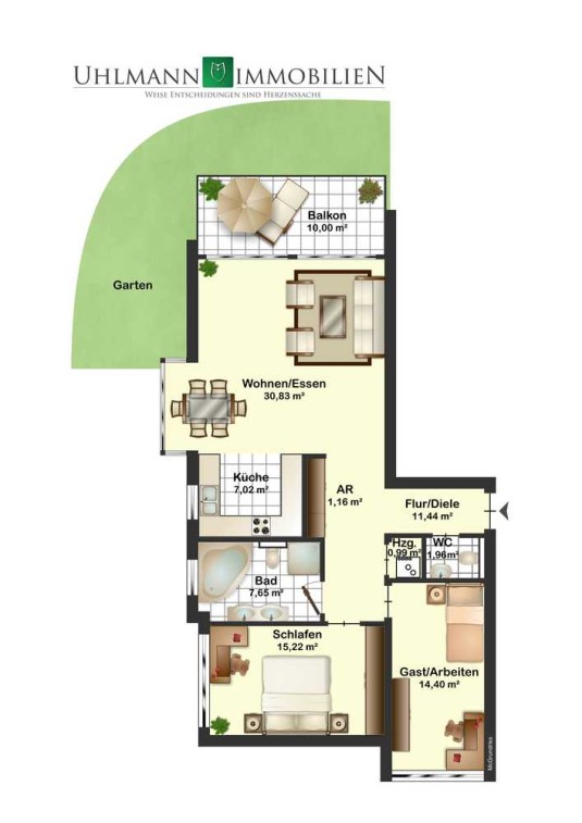 Vermietete, moderne Dreizimmer-Gartenwohnung in zentraler Lage von Wehen