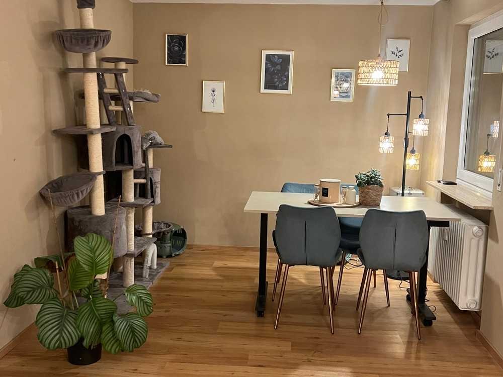 Die Wohnung befindet sich im Hochparterre eines gepflegten Mehrfamilienhauses aus dem Jahr 1970 und wurde 2021 renoviert. Neben einem modernen Laminatboden wurden auch die Rollläden erneuert und sämtliche Wände frisch gestrichen.
