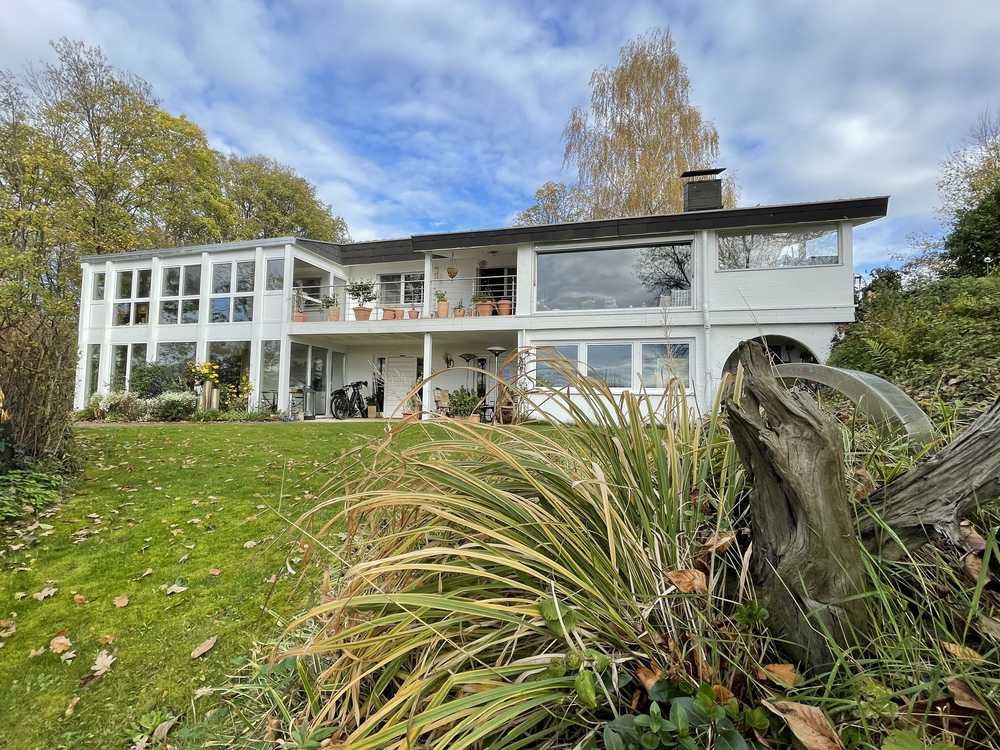 Eine Privatauffahrt führt zu diesem exklusiven Anwesen eingebettet in einen parkartigen Garten mit altem Baumbestand. Das uneinsehbare Grundstück erstreckt sich über eine Fläche von 1.819 m² mit einer Wohnfläche von ca. 396 m² .