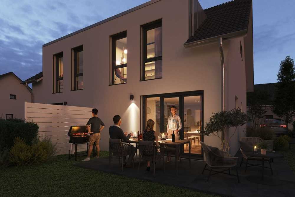 Ein Zuhause, bei dem Komfort, Nachhaltigkeit und Effizienz Hand in Hand gehen. Und das auch noch in einem familienfreundlichen Umfeld. Ist das auch Ihr Traum? Dann lassen Sie Ihn wahr werden! Hochwertige Doppelhaushälften, welche sich flexibel an Ihre Bedürfnisse anpassen lassen. Dazu ein traumhafter, weitläufiger Garten und eine umweltfreundliche Energieversorgung. So geht Wohnen im Einklang mit der Umwelt und ganz viel Wohnqualität.