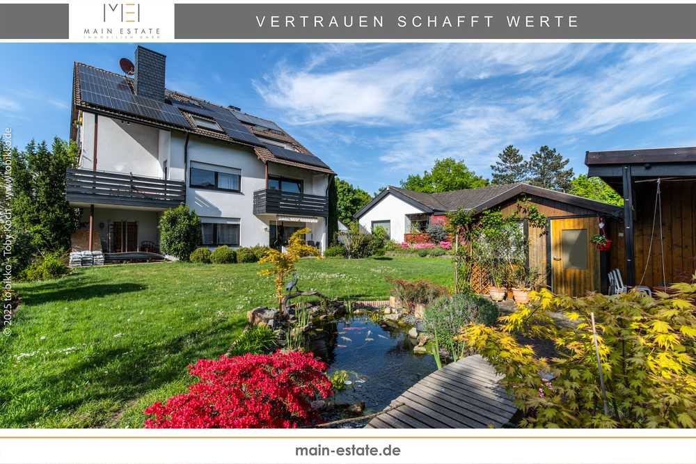 Die Liegenschaft erstreckt sich über eine Grundstücksfläche von ca. 1.345 m² und umfasst ein Zweifamilienhaus mit ausgebautem Dachgeschoss, welches ca. 1983 errichtet wurde. Im Laufe der Jahre wurde die Immobilie liebevoll gepflegt und kontinuierlich instand gehalten. Die Liegenschaft besitzt außerdem einen großzügigen und idyllisch angelegten Garten, der mit seiner ausgedehnten Grünfläche sowie einem Fischteich und einem Gartenhäuschen zum Verweilen einlädt.