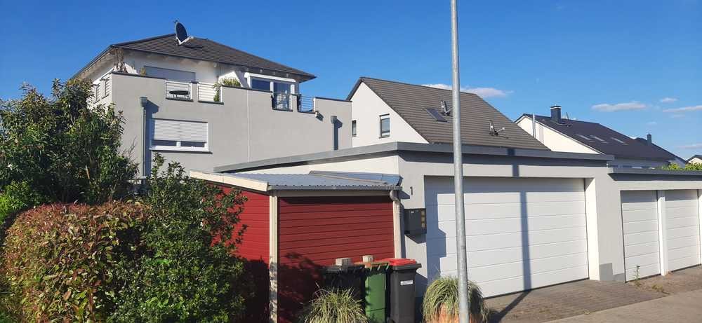 Vor dem Haus befindet sich eine Garage mit Automatik Rolltor.