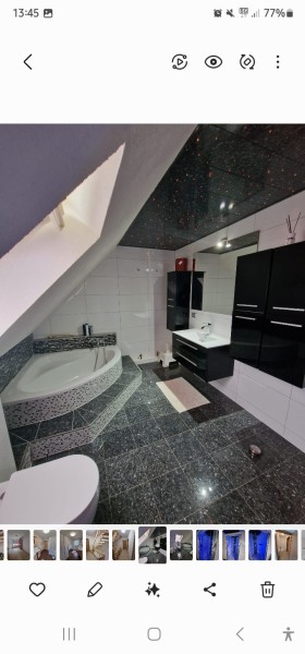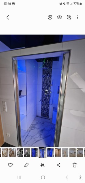 Ein Highlight ist das kernsanierte Badezimmer im Obergeschoss mit stilvoller Eckbadewanne, begehbarer Dusche mit LED-Beleuchtung, Granitboden und edlen Mosaikdetails – Wellness-Feeling inklusive.