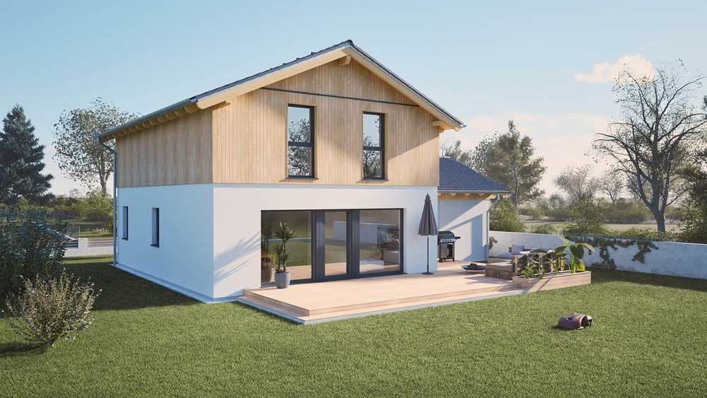 Kompakt, funktional und perfekt geplant – dieses Haus bietet ein ideales Zuhause für Familien. Der offene Wohn-, Ess- und Küchenbereich schafft eine einladende Atmosphäre, während große Fensterflächen für helle, freundliche Räume sorgen.