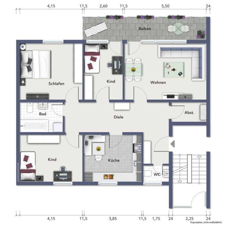 Diese lichtdurchflutete Eigentumswohnung im 3. Obergeschoss eines gepflegten Mehrfamilienhauses besticht durch ihre großzügige Raumaufteilung und ihre attraktive Lage in einer parkähnlichen Wohnanlage in Bühl. Mit einer Wohnfläche von über 100 m² bietet sie reichlich Platz für Familien, Paare oder anspruchsvolle Singles, die ein komfortables und ruhiges Wohnumfeld suchen.