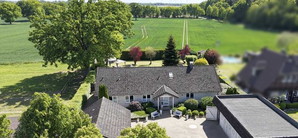 Die weiträumige Grundstücksfläche ist perfekt für Pferdeliebhaber, da sie genug Platz für Stallungen oder zusätzliche Außenbereiche bietet.