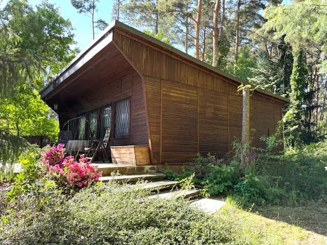 Der massive Holzbungalow mit rund 50 m² Wohnfläche wurde 1982 errichtet und verfügt über eine große Terrasse aus Natursteinplatten, einen offenen Wohnbereich mit moderner Innenausstattung, 2 separate Schlafbereiche, Küche und ein Bad mit Nasszelle. Die Ausstattung ist überwiegend dem Baujahr entsprechend, punktet aber durch funktionale Extras wie einen neuen Stromkasten, Starkstromanschluss und Sat-TV. Auch ein großzügiger Hundezwinger befindet sich auf dem Grundstück.