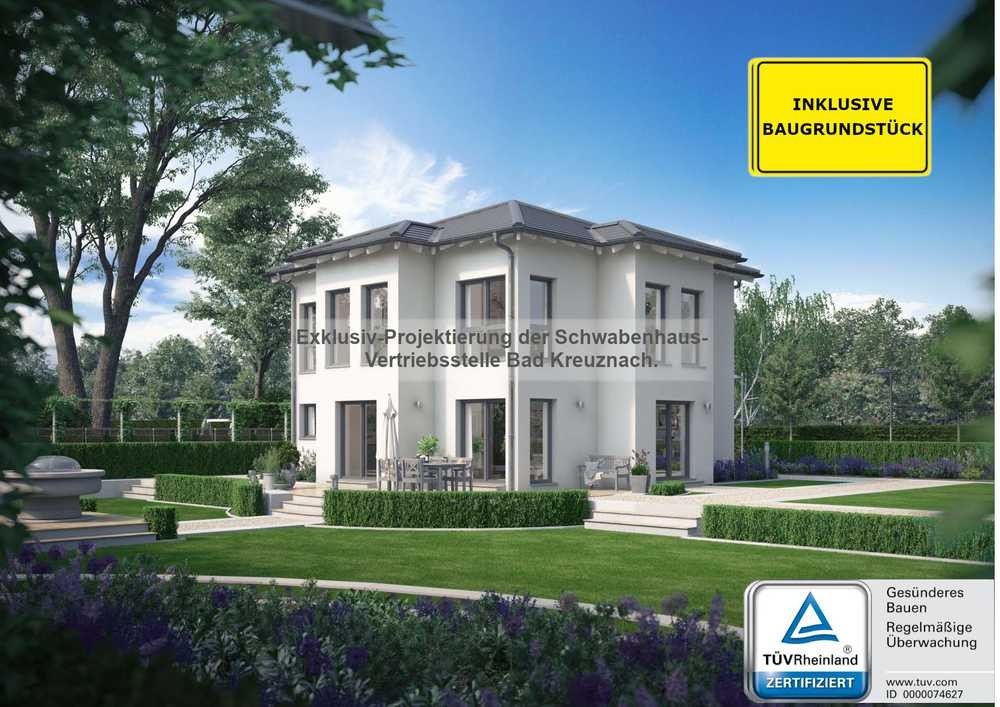 Hier können Sie als Bauherr die Hausbau-Firma SCHWABENHAUS mit der Errichtung eines energieeffizienten Hauses mit Festpreisgarantie und zeitnaher Fertigstellung beauftragen und Ihre Bauwünsche INDIVIDUELL auf einem wunderschönen Baugrundstück verwirklichen, welches Sie vorher direkt „von privat“ erwerben würden. -- Die hier dargestellten Pläne / Grundrisse stellen eine mögliche Bebauung des Grundstücks dar.