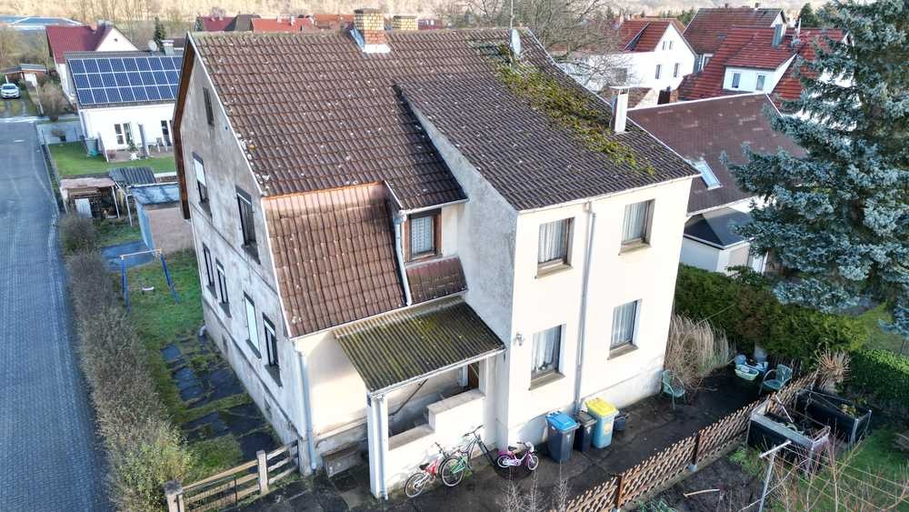 Verkauft wird ein sanierungsbedürftiges Einfamilienhaus mit Garage an einer Anliegerstraße. Der bauliche Zustand des Gebäudes (Baujahr ca. 1928 / Anbau ca. 1970) ist in einem schlechten Zustand. Es besteht ein allgemeiner Renovierungsbedarf sowie erheblicher Unterhaltungsstau. Die Garage ist massiv gebaut mit zweiflügligem Metalltor und Einfachverglasung. Auf dem Grundstück befinden sich befestigte Stellplätze.
