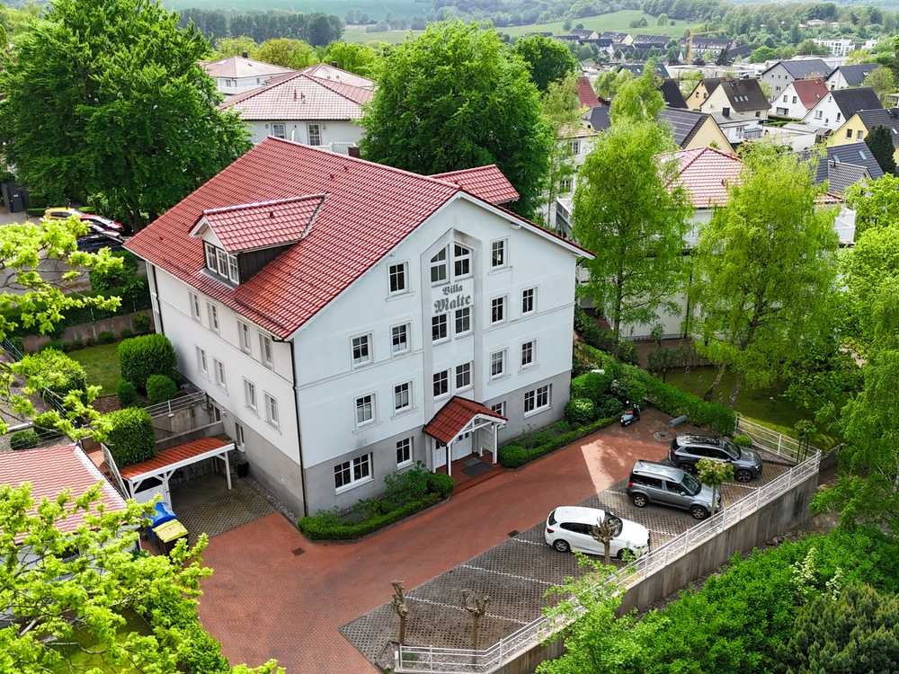 Auf dem höchsten Punkt des Ostseebads Binz, der Spitze des Klünderbergs, befindet sich die „Villa Malte" mit insgesamt neun Wohneinheiten. Die 1997 erbaute Villa beherbergt das hier angebotene 2-Zimmer-Apartment im Erdgeschoss, welches über das Treppenhaus erreichbar ist. Ein geräumiger Flur führt zum Badezimmer sowie zum großzügigen, offenen Wohn- und Essbereich mit integrierter Küche. Die nach Süden ausgerichtete Terrasse ist sowohl vom Wohnbereich als auch vom Schlafzimmer aus zugänglich. Zwischen Schlafzimmer und Badezimmer – letzteres mit WC und Dusche ausgestattet – befindet sich ein zusätzlicher Raum, der sich ideal als begehbarer Kleiderschrank eignet und von beiden Seiten zugänglich ist. Das Badezimmer verfügt über einen Waschmaschinenanschluss. Alternativ steht im Keller ein Gemeinschaftswaschraum mit münzbetriebenen Waschmaschinen und Trocknern zur Verfügung. Zur Wohnung gehören außerdem ein Kellerabteil sowie ein Stellplatz vor der Villa Malte. Das Apartment wurde frisch renoviert und wird unmöbliert und ohne Küche übergeben. Eine Umnutzung zur Ferienvermietung wurde bereits anderen Eigentümern im Haus genehmigt und könnte auf Antrag auch für diese Einheit ermöglicht werden.