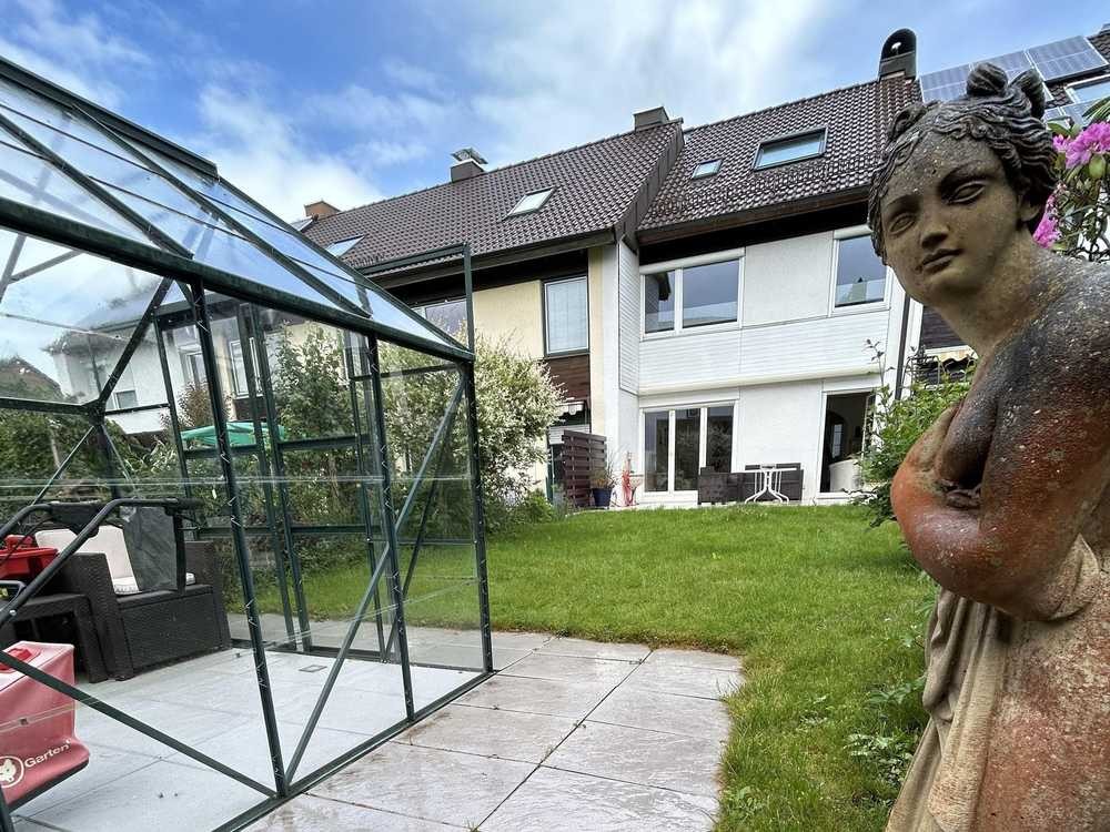 Dieses bietet viel Platz für Familienleben und gesellige Abende. Von hier aus gelangen Sie direkt auf die sonnige überdachte Terrasse, die in Westausrichtung liegt und von einem liebevoll gestalteten Garten umgeben ist. Der etwa 20 m lange, südwestlich ausgerichtete Garten bietet viel Privatsphäre und lädt mit einem großen Garten/Gewächshaus zur vielseitigen Nutzung ein. Perfekt für entspannte Stunden im Freien oder für Kinder, die einen sicheren Außenbereich zum Spielen haben möchten.