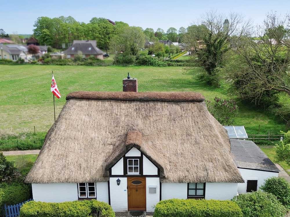 Inmitten der malerischen Landschaft Dithmarschens befindet sich diese charmante Reetdachkate aus dem Jahr 1780 – ein liebevoll erhaltenes Kleinod, das historischen Charme und naturnahes Wohnen auf ganz besondere Weise vereint. Das Haus liegt ruhig in Nordhastedt, umgeben von einem gepflegten Garten, einem kleinen plätschernden Bachlauf und angrenzend an eine Pferdekoppel, die einen unverbaubaren Blick ins Grüne ermöglicht. Die Wohnfläche von rund 93 m² verteilt sich auf zwei Ebenen und bietet insgesamt fünf Zimmer. Im Erdgeschoss erwartet Sie ein gemütliches Wohnzimmer mit sichtbaren Holzbalken, ein Schlafzimmer mit Terrassenzugang sowie ein separates Arbeitszimmer. Die offene Küche mit angrenzendem Essbereich bildet das Herzstück des Hauses. Ein modernes Duschbad rundet das Raumangebot im Erdgeschoss ab. Im Dachgeschoss befinden sich zwei weitere Schlafzimmer, die sich ideal als Kinder- oder Gästezimmer eignen. Ein separates WC sorgt auch auf dieser Etage für Komfort und Funktionalität. Das ca. 760 m² große Grundstück wurde mit viel Liebe zum Detail gestaltet. Besonders hervorzuheben ist die Lage an einem kleinen Bach sowie die angrenzende Pferdekoppel – beides verleiht der Immobilie eine besondere Ruhe und Weite. Für Tierfreunde bietet der kleine Offenstall mit vorgelagertem Paddock ideale Bedingungen, zum Beispiel für die Haltung von Ponys, Ziegen oder Hühnern. Zusätzlich stehen ein Gartenschuppen, eine Garage sowie insgesamt fünf Pkw-Stellplätze zur Verfügung. Die Nutzungsmöglichkeiten dieser Reetdachkate sind vielfältig: Ob als fester Wohnsitz, als charmantes Wochenendrefugium oder als Ferienimmobilie – dieses Haus passt sich Ihren Lebensplänen an. Lassen Sie sich von der Atmosphäre dieses besonderen Ortes verzaubern und entdecken Sie die Möglichkeiten, die Ihnen dieses historische Reetdachhaus eröffnet.