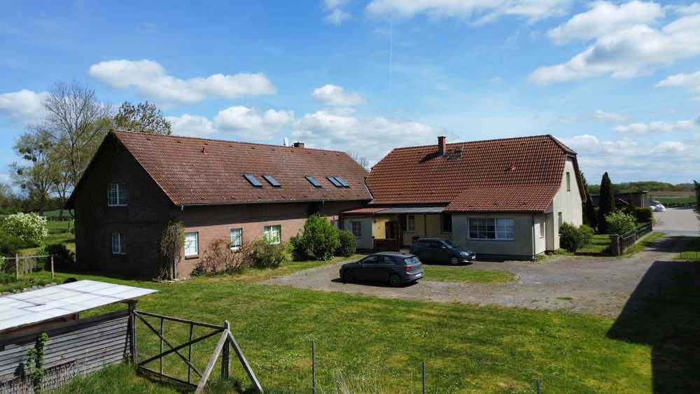 • Wohnhaus: Im Erdgeschoss befinden sich auf ca. 121 m² Wohnfläche verteilt auf fünf Zimmer zzgl. zwei Badezimmer und Küche. Der Dachboden ist ausbaufähig und bietet zusätzliches Potenzial.