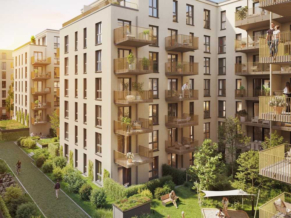 Die Energieversorgung erfolgt über Fernwärme und Photovoltaik-Anlagen. Das Quartier wird die Anforderungen eines KfW-Effizienzhauses 40 erfüllen. Darüber hinaus wird eine Nachhaltigkeitszertifizierung nach dem Bewertungssystem der NaWoh und das Qualitätssiegel nachhaltiges Gebäude (QNG) mit der Zielsetzung Plus erfüllt. Neben der nachhaltigen Wärmeversorgung setzt Instone auf eine ökologische Bauweise mit begrünten Fassaden. Eine zukunftssichere Wahl für Eigennutzer und Investoren.