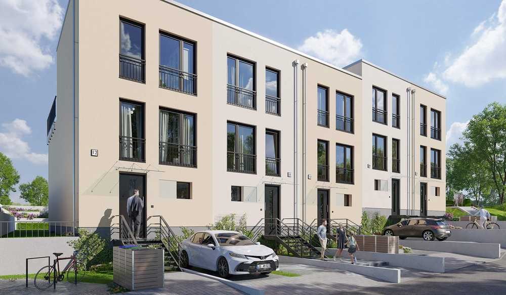 Sie betreten das Reihenhaus durch einen hellen Eingangsbereich, der mit Garderobe und Tageslichtbad mit bodengleicher Dusche direkt praktisch startet. Der offene Wohnbereich schafft den Mittelpunkt Ihres neuesn Zuhauses mit direktem Zugang zur Terrasse für entspannte Momente im Freien. Im Obergeschoss erwarten Sie zwei helle Räume für erholsamen Schlaf oder kreatives Spielen, ergänzt durch ein weiteres Badezimmer mit Badewanne. Das Dachgeschoss bietet ein weiteres Zimmer und ein ausgebautes Studio, was zum Arbeiten oder Entspannen einlädt. Die angrenzende Dachterrasse ist ein Rückzugsort mit Weitblick.