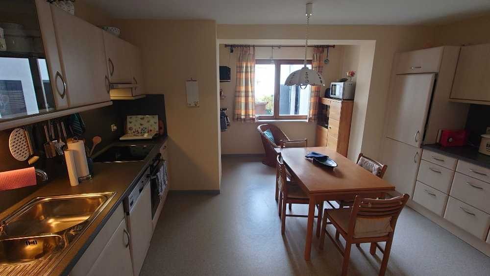 Das grosszügig geschnittene Haus verfügt über 2 Wohnungen mit einem Haupteingang und 2 separaten Inneneingängen. Im Erdgeschoss befindet sich ein Bad mit Dusche / WC, grosszügige Einbauküche mit Blick auf den Innenhof, Esszimmer und grosses Wohnzimmer (ca. 34 qm) sowie Waschküche mit Waschmaschine und Trockner. Speisekammer und separater Abstellraum runden das Raumangebot im Erdgeschoss ab.