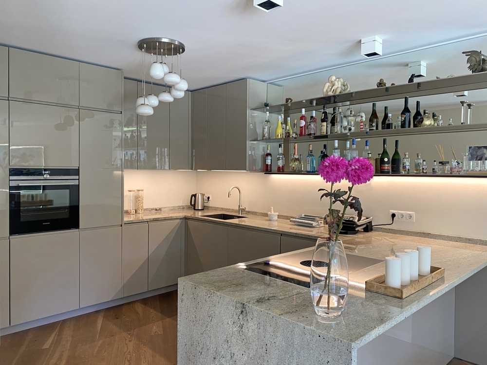 Die Wohnung ist mit zwei hochwertigen Küchen des italienischen Herstellers Elmar Cucine und mit Siemens/Bora Einbaugeräten ausgestattet. Die Arbeitsplatte ist aus edlem Granit.