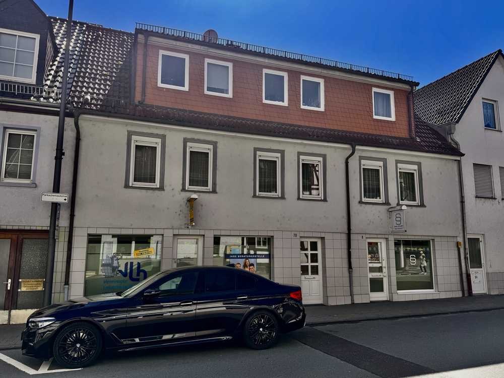 Die gesamte Wohn- und Bürofläche beträgt ca. 235 qm und verteilt sich auf 2 Büro-/Ladeneinheiten im Erdgeschoss und insgesamt 3 Wohnungen im Obergeschoss und Dachgeschoss des Hauses.