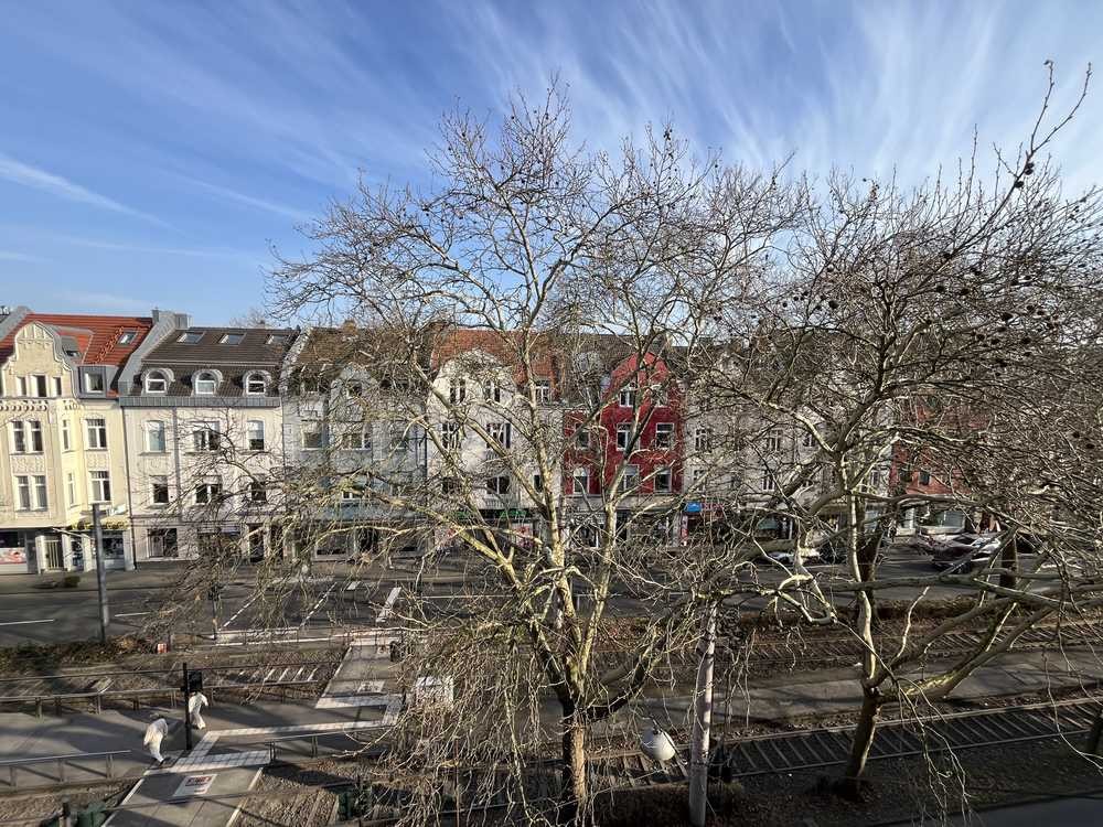 Diese wunderschöne 3-Zimmerwohnung befindet sich im 4. Obergeschoss und Sie erreichen Sie über einen Personenaufzug oder über das gepflegte Treppenhaus. Sie betreten Ihr neues Zuhause über einen kleinen Eingangsbereich mit praktischer Garderobe. Von hieraus erreichen Sie das lichtdurchflutete Wohn-/Esszimmer mit offener Küche. Diese verfügt über eine Theke und ist das kommunikative Herz der Maisonette-Wohnung. Über zwei Balkontüren treten Sie nach draußen und blicken über die baumgesäumte Luxemburger Straße.