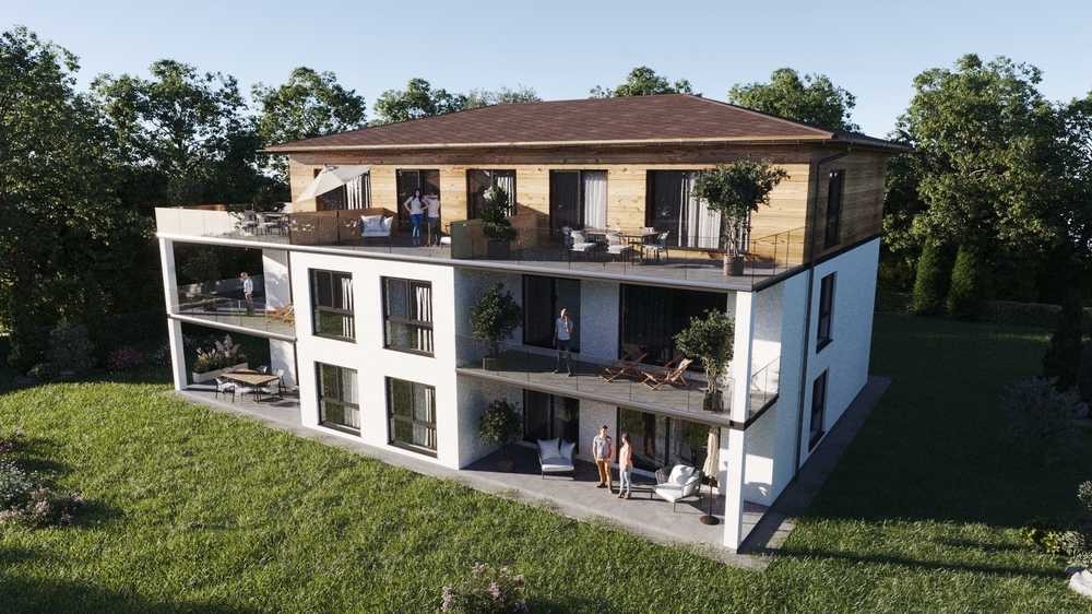 In toller Lage entsteht ein exklusiver Neubau mit klarer Formensprache, harmonisch eingefügt in die gewachsene Nachbarschaft. Weiße Putzfassaden treffen auf warme Holzelemente im Dachgeschoss, während bodentiefe Fenster und elegante Glasbrüstungen für Offenheit und Licht sorgen. Jede der sechs Wohnungen bietet Dachloggien, Balkon oder Terrasse – mit Blick ins Grüne und viel Privatsphäre.