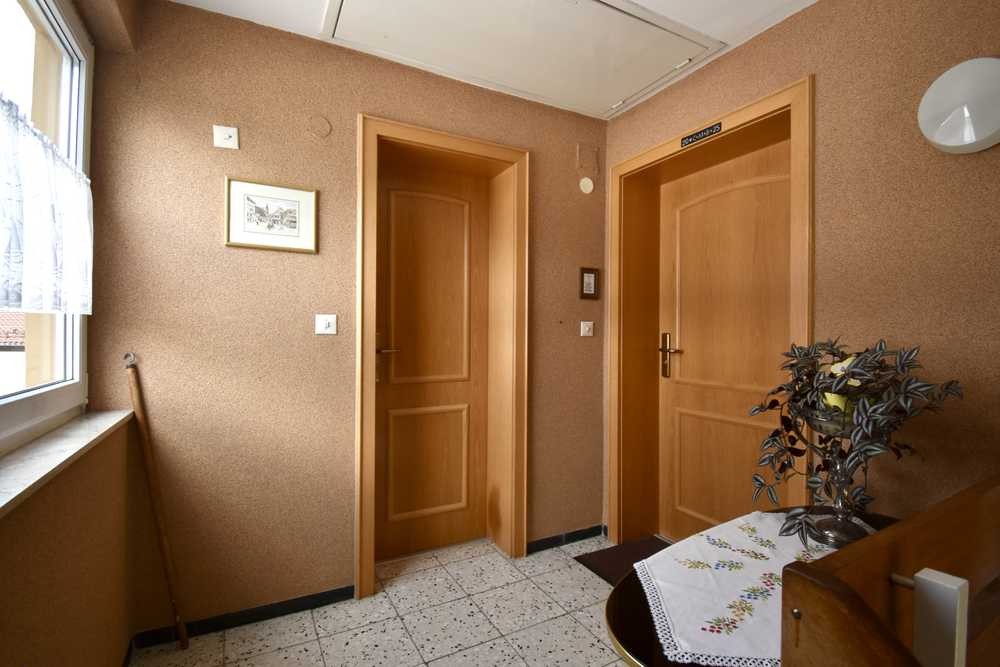 Obergeschoss (vermietet): 3 Zimmer + separates Zimmer außerhalb der Wohnung, Bad, WC