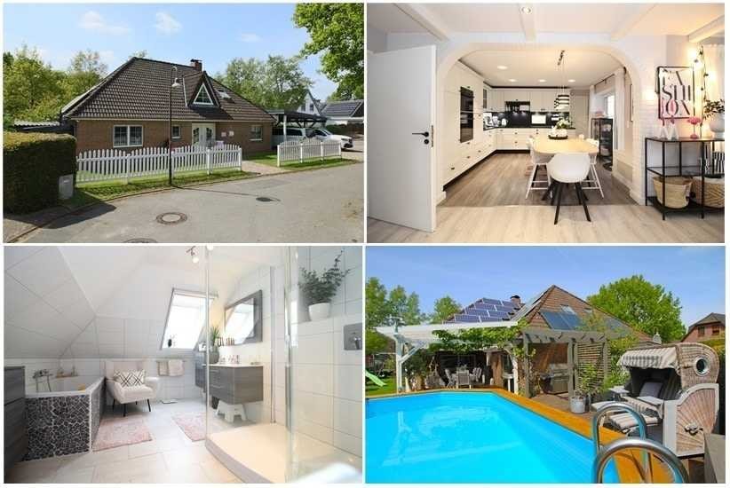 Umfassend und technisch extrem hochwertig saniertes Einfamilienhaus mit massiver Garage, Doppelcarport, großer Terrasse mit beheiztem Pool im uneinsehbaren Garten in Sackgassenlage nahe der Kreisstadt Schleswig und dem Ostsee-Fjord Schlei!