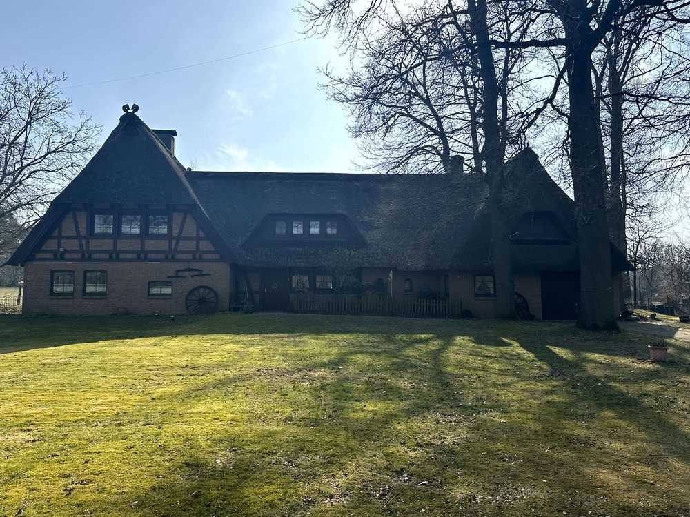 Fachwerkhaus mit Reetdach, Einliegerwohnung, Nebengebäude und Pferdewiese – ein einzigartiges Anwesen in idyllischer Lage.
