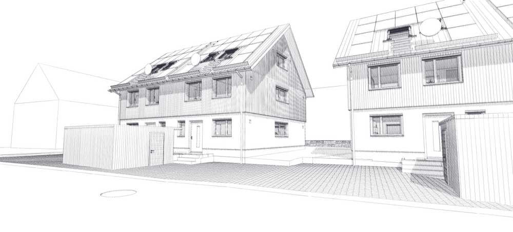 Neubau von 2 unterkellerten Doppelhäusern bzw. 4 Doppelhaushälften mit Schopf in Holzbauweise.