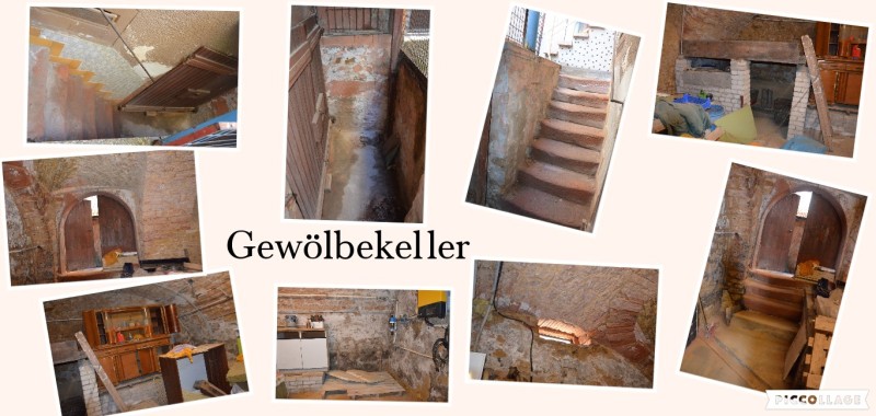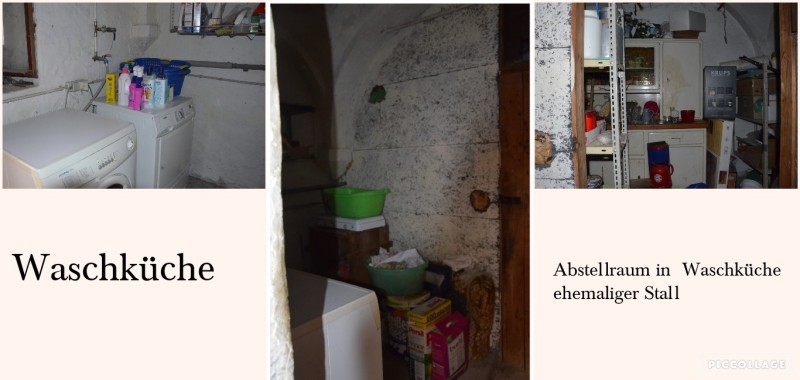 Garage, Heizraum, ehemaliger Stall: Platz für Waschmaschine, Trockner, 1 Abstellraum, Gewölbe-Sandsteinkeller