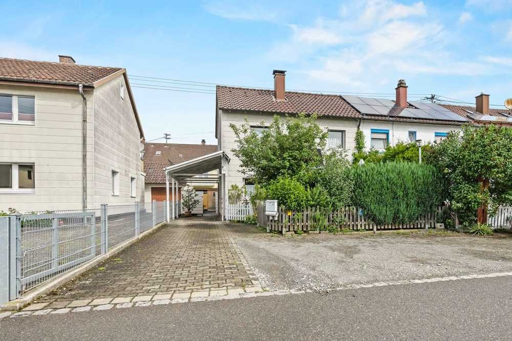 Ein Gartenhaus bietet Platz für Gartengeräte und Abfallbehälter. Für Fahrzeuge stehen ein Carport sowie vier weitere Stellplätze direkt auf dem Grundstück zur Verfügung.