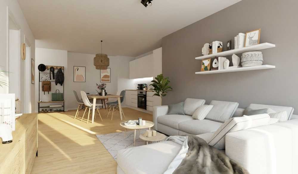 Treten Sie ein in Ihre neue Wohlfühloase. Der Flur führt Sie direkt in den großzügigen Wohn- und Küchenbereich, der nicht nur durch seine bodentiefen Fenster, sondern auch durch die praktische Anordnung besticht. Die offene Küche lädt zum Kochen und Genießen ein.