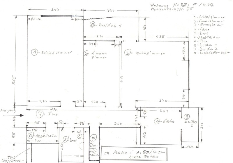 Es gibt einen relativ großen Kellerraum, zwei Balkone (Ost- und Südseite), kein Parkplatz (privates Parkhaus ist gegenüber).