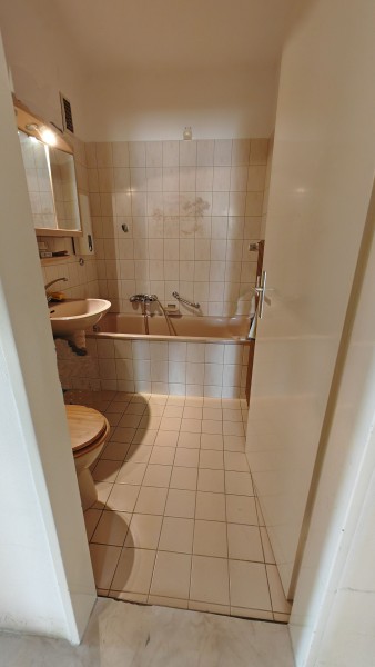 Die Wohnung hat eine einfache Ausstattung, eine kleine Küche und Bad. Der angrenzende Abstellraum kann durch Umbau mit dem Bad verbunden werden. Die Böden haben teilweise Laminat, ansonsten ist sie renovierungsbedürftig, Elektroleitungen und Heizkörper müssen erneuert werden.