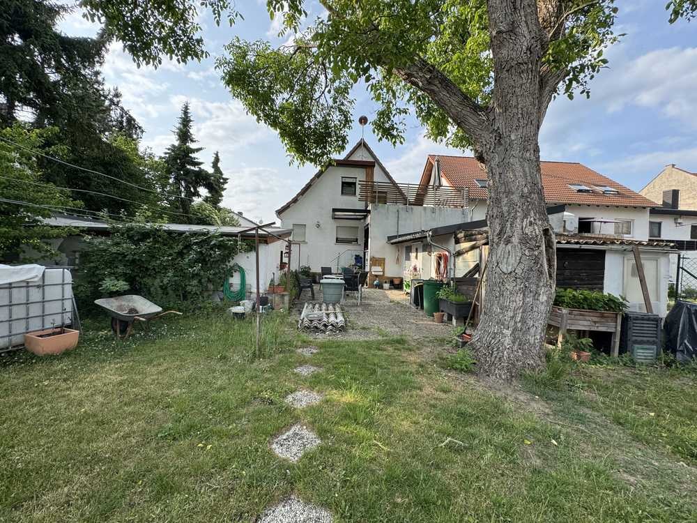 Das freistehende Einfamilienhaus aus dem Jahr 1955 befindet sich in einer guten Lage und ist in ein schönes Wohnumfeld eingebettet. Das großzügige Grundstück von 1159 m² bietet viel Raum für individuelle Gestaltungsmöglichkeiten. Im Erdgeschoss stehen etwa 92 m² Wohnfläche mit einem Schlafzimmer, großem Wohn- und Esszimmer, Küche, Bad und Gäste-WC zur Verfügung. Das Dachgeschoss mit ebenfalls 2 Zimmern, Küche, Bad und einer großen Dachterrasse bietet ca. 54 m² Wohnfläche und viel Platz für kreative Nutzung. Das Haus ist voll unterkellert, was zusätzlichen Stauraum schafft. Im Hof gibt es zwei Garagen sowie bis zu vier Stellplätze, was für ausreichend Parkmöglichkeiten sorgt. Außerdem eröffnet die Größe des Grundstücks die Möglichkeit, im hinteren Bereich mit einer Zufahrt an den Garagen vorbei ein großes, freistehendes Haus zu bauen – ideal für Familien oder Investoren, die noch mehr Raum schaffen möchten.