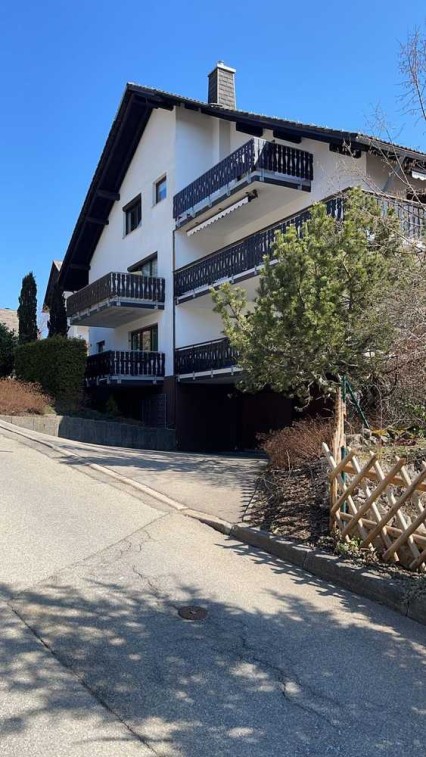Im offenen Bereich liegt das große und helle Wohn- und Esszimmer mit Balkon. Von hier aus hat man die unverbaute Aussicht auf die schöne Landschaft des Schwarzwaldes.