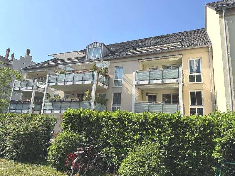 Ein besonderes Highlight ist der sonnige Süd-Balkon, ausgestattet mit einer Markise, mit Blick in den ruhigen Innenhof, der direkt vom Wohnzimmer aus zugänglich ist.