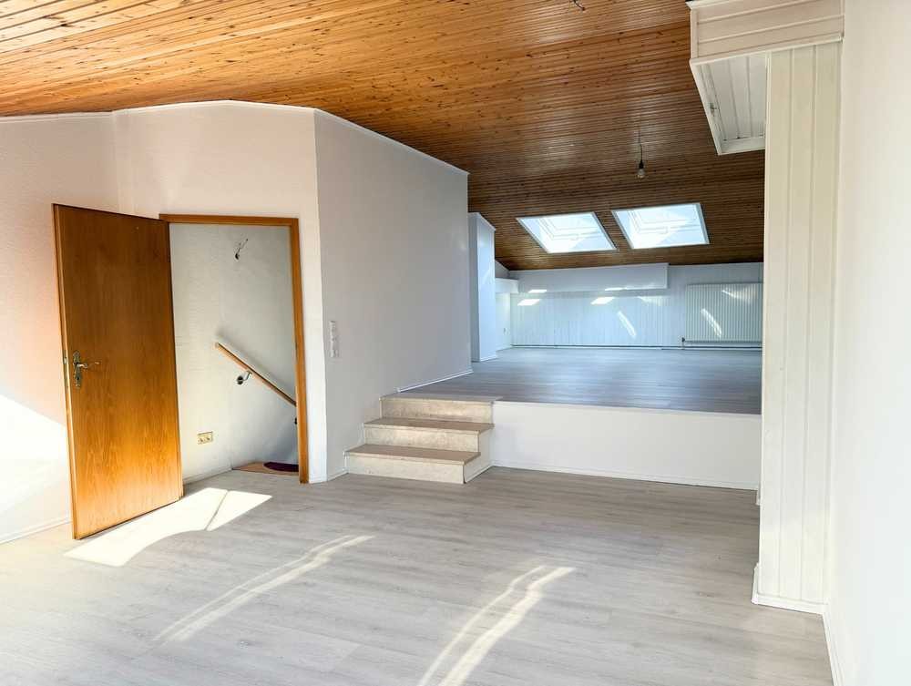 Im Obergeschoss finden Sie ein geräumiges Schlafzimmer mit Zugang zu einem sonnigen Balkon – der ideale Ort für entspannte Morgenstunden. Ein absolutes Highlight ist das ausgebaute Dachgeschoss: Über 40 m² offene Fläche schaffen ein stilvolles Studioambiente, das sich hervorragend als Homeoffice, Kreativraum oder gemütlicher Rückzugsort eignet.