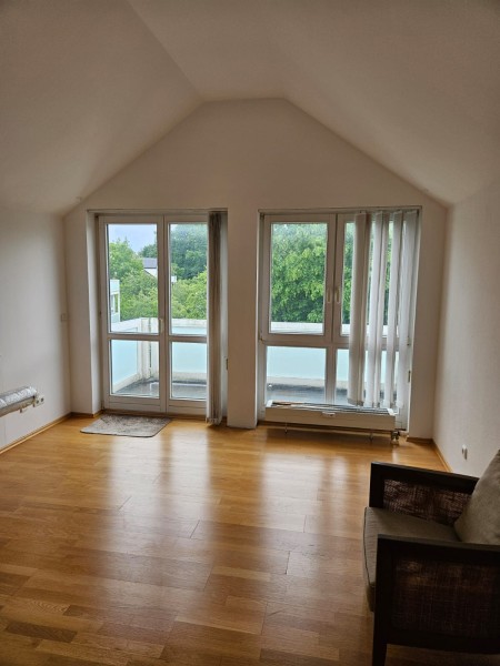 Das Schlafzimmer und die Küche haben eine Dachschräge. Die darin befindlichen Fenster und Rollos sind elektrisch bedienbar.