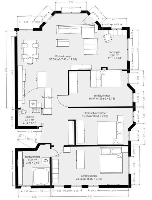 Mit ca. 140 m² Wohnfläche bietet die Wohnung ausreichend Platz für Familien, Paare mit Homeoffice-Bedarf oder Menschen, die großzügiges Wohnen schätzen. Herzstück der Wohnung ist die geräumige Wohnküche mit angrenzendem Wohnbereich, von dem aus Sie direkt Zugang zum sonnigen Balkon haben – ideal zum Entspannen oder für gesellige Abende im Freien.