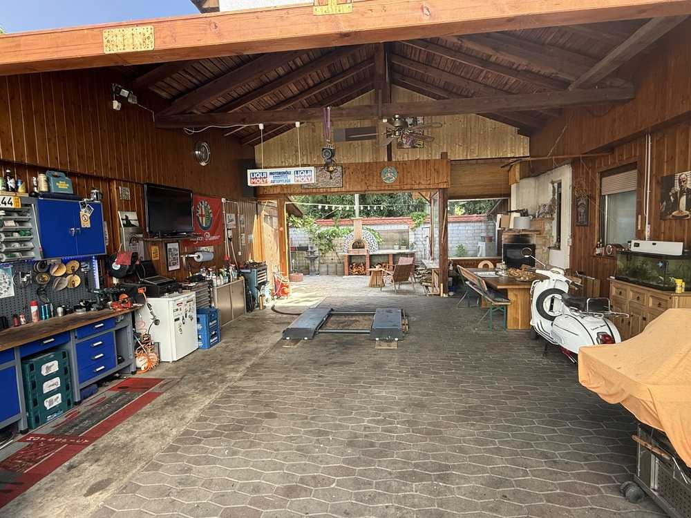 Dazu gehört eine sehr großzügige Garage mit Platz für mindestens vier Fahrzeuge – perfekt als Stellfläche oder zusätzlicher Arbeitsbereich. Die Garage ist ebenso hochwertig ausgestattet, modern beleuchtet und ideal für Sammler, Schrauber oder Unternehmer.
