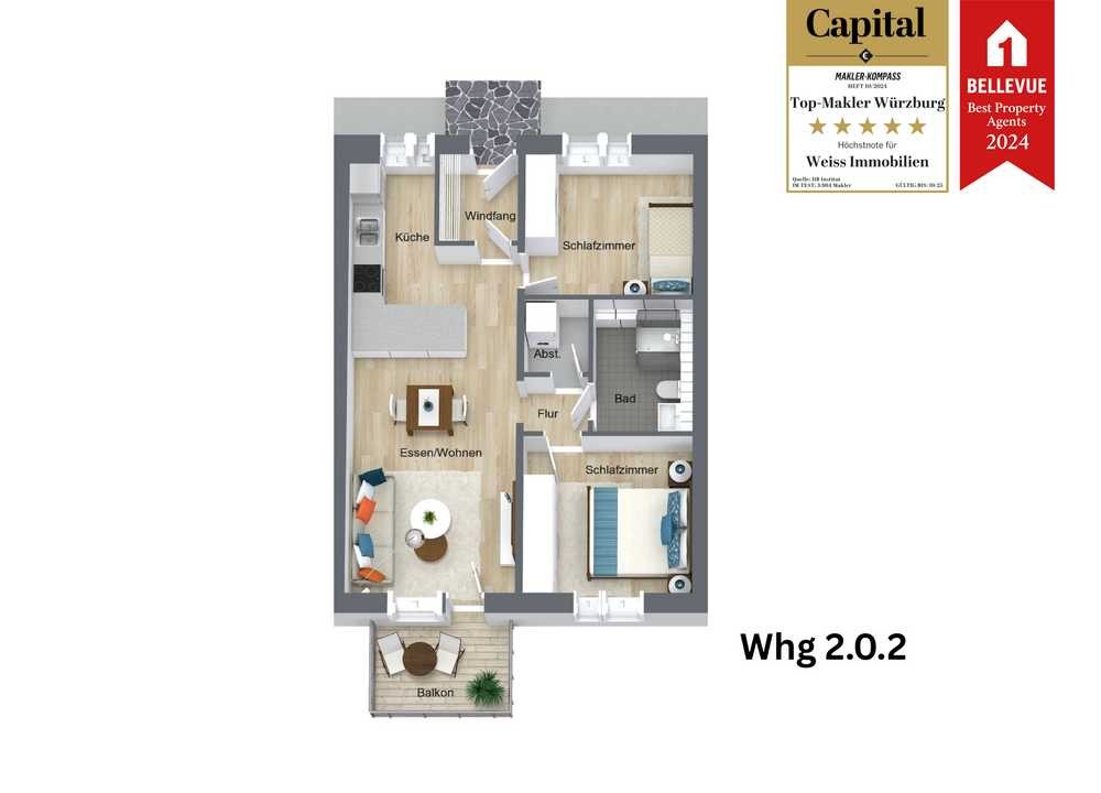 Die Wohnung überzeugt mit einem durchdachten Grundriss und einer hochwertigen Ausstattung.