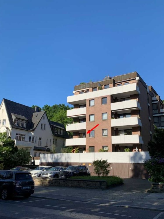 Die hier zum Kauf angebotene Wohnung befindet sich in einem sehr ruhigen und gepflegten Mehrfamilienhaus in bevorzugter Wohnlage. Das Gebäude wurde 1973 auf einem großen (2430 m²) ehemaligen Villengrundstück errichtet. Das Haus umfasst 19 Wohnungen, vorne acht 2-Zimmerwohnungen, hinten acht 3-bzw. 4-Zimmerwohnungen, sowie ein Penthouse. Die Wohnungen im Vorder- bzw. im Hinterhaus liegen zueinander versetzt, sodass sich auf jeder Wohnebene nur 2 Wohnungen befinden.