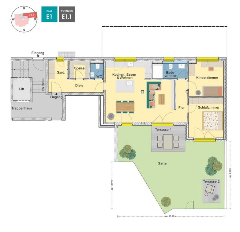 MEISTERSTÜCK | E1.1 | 3 Zimmer Gartenwohnung mit Süd Ausrichtung und privaten Gartenanteil