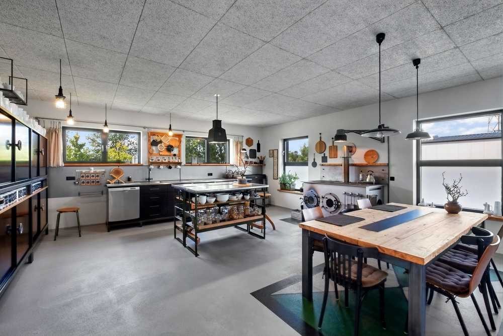 Die offene Raumgestaltung sorgt für ein harmonisches und lichtdurchflutetes Ambiente, das durch eine hochwertige und individuell gestaltete Ausstattung zusätzlich unterstrichen wird. Ein absolutes Highlight ist die stilvolle Küche mit einem maßgefertigten Ofen, die Ästhetik und Funktionalität perfekt vereint.