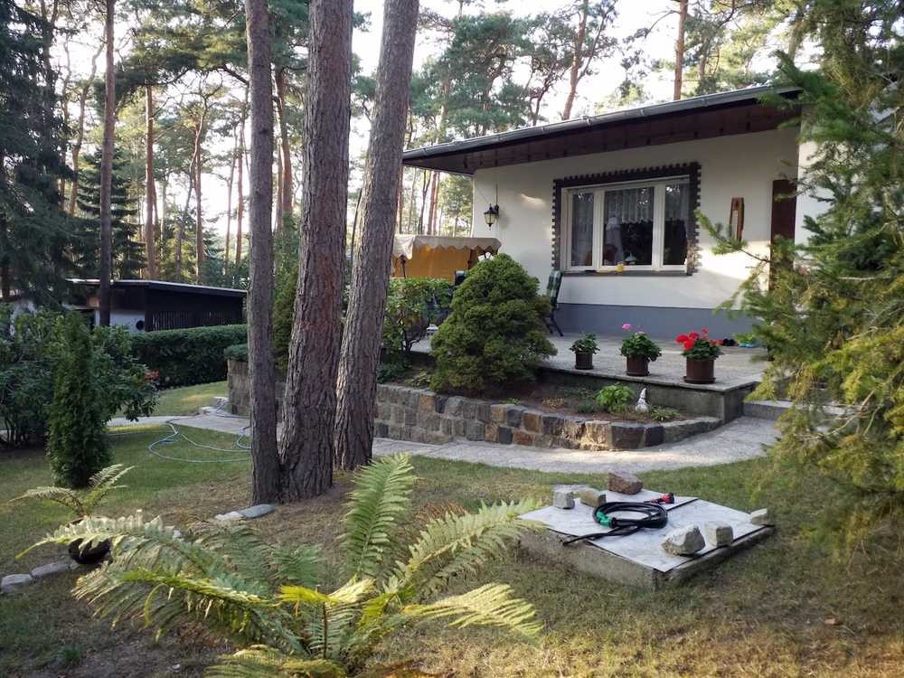 Dieser massiv errichtete Bungalow, im Erholungsgebiet von Hohenwarthe, ist schön hergerichtet und hat einen Teilkeller. Vom kleinen Flur aus gelangt man in das Duschbad, einen Abstellraum mit Fenster und in den Wohnraum mit angrenzendem Schlafbereich. Gleichfalls ist von hieraus die Küche begehbar, die im Jahr 2003 komplett neu gestaltet wurde. Hier wird an dem kleinen Esstisch gemütlich die Mahlzeit eingenommen und entspannt geplaudert, wenn es auf der Terrasse zu kühl ist. An kühlen Tagen dient ein Ölradiator dazu die Räume zu erwärmen. Wer möchte, kann sich auch einen Kamin einbauen. Durch die große Fensterfront im Wohnraum kommt viel Licht herein und es ist ein herrlicher Blick ins Grüne sowie auf die Terraasse gegeben. Um den neuen Bedingungen weitestgehend zu entsprechen, sind wesentliche Modernisierungsarbeiten vorgenommen worden. So wurde die Elektrik, das Dach und das Leitungssystem erneuert.