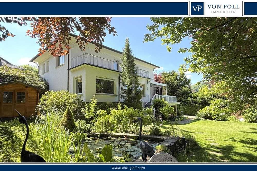 Der Außenbereich der Villa ist ein wahres Highlight. Der liebevoll angelegte Garten mit altem Baumbestand bietet Ruhe und Entspannung. Ein Teich mit eigenem Bachlauf und ein Gartenhaus erweitern die Nutzungsmöglichkeiten im Freien. Die Natursteinterrassen – zwei direkt am Haus und eine weitere im Garten – laden zu geselligen Stunden im Freien ein. Ein Mähroboter von Stihl erleichtert die Gartenpflege erheblich.