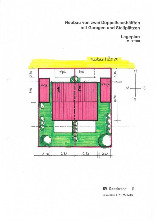 Die ersten 4 Häuser in Donnbronn sind bereits im Bau. Baubeginn für Bauabschnitt 3 erfolgt 2026.